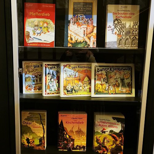Spannende Romane für verschiedene Altersstufen, Stickerbuch zum Thema Mittelalter und Malbücher für die kleinen Gäste